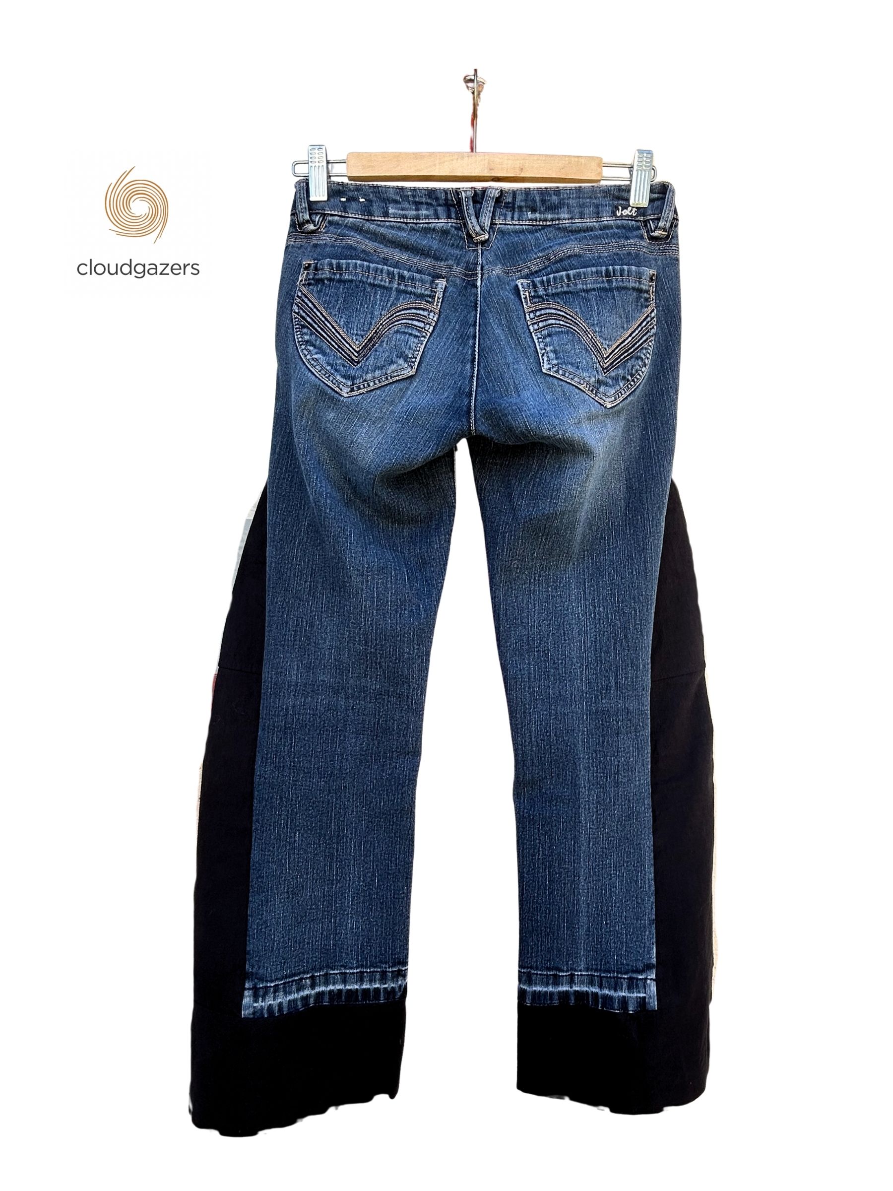 - Repurposed blue denim with black cotton insert panels